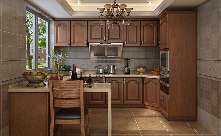宮廷歐式定制櫥柜采用深色木紋為主基調(diào),搭配同色系臺(tái)面,將古典的氛圍更深層次的書寫開。柜體采用吊柜和地柜,空間存儲(chǔ)被拉大,符合居家存儲(chǔ)需求。