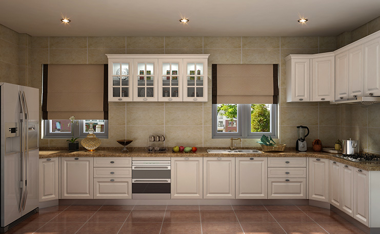 L型動線設(shè)計(jì),美式田園風(fēng)設(shè)計(jì)風(fēng)格,該整體櫥柜兼具多樣性與實(shí)用性。地柜以白色和灰色為主色調(diào),搭配不同色系大理石,顏色更跳脫,整體風(fēng)格更加多變。