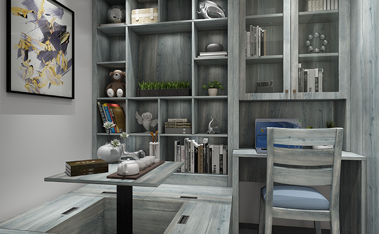 書房榻榻米定制為增加會客空間,專門設(shè)置升降臺。書柜設(shè)計存儲面積更大,同時地臺擴(kuò)展存儲空間,收納方便,更適合全家使用。